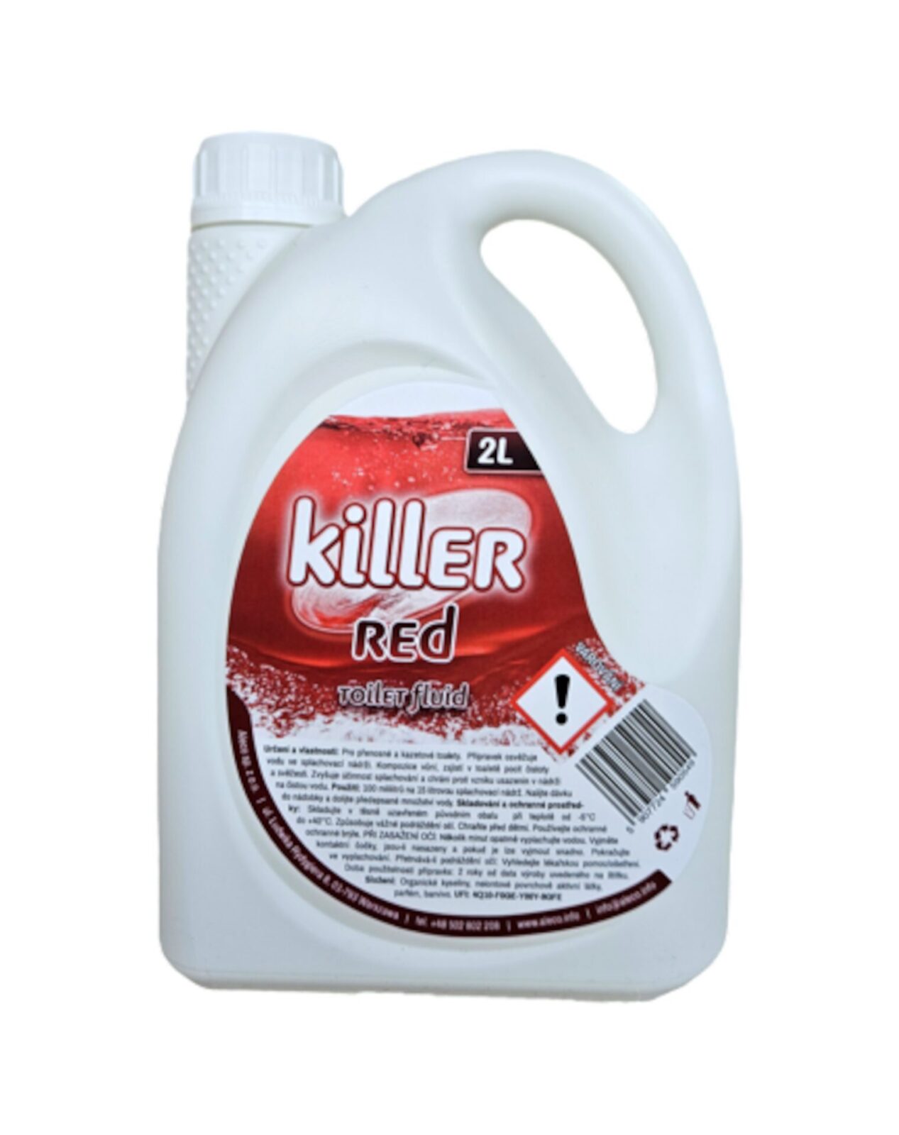 Killer RED je přípravek pro použití v nádržích s čistou vodou pro splachování v přenosných toaletách, kempových přívěsech a na jachtách.