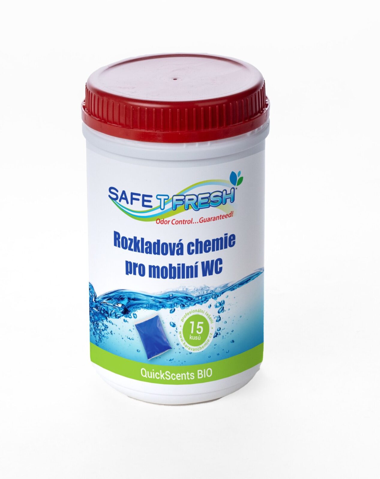 Quick Scents BIO. Rozkadová chemie vhodná pro domácí čističky a septiky. Kapsle s kompletním přírodním složením šetrné k životnímu prostředí, ideální pro používání při běžné teplotě pro denní údržbu vaší toalety. Speciální patentovaná chemická formule Triple Molecular Technology pro uvolňování biocidů v odstupňovaných intervalech zajišťuje rozklad fekálií, vynikající ochranu proti zápachu toalety v uzavřených prostorech, zabraňuje usazování nečistot na stěnách nádrže, vytváří dlouhotrvající modrou barvu. Náš jedinečný vnější film se rychle rozpouští v kombinaci s měkkým, vysokým nebo nízkým pH i tvrdou vodou. Při použití slané vody budou kapsle Safe-T-Fresh fungovat na vyšší úrovni. Neobsahuje formaldehyd.