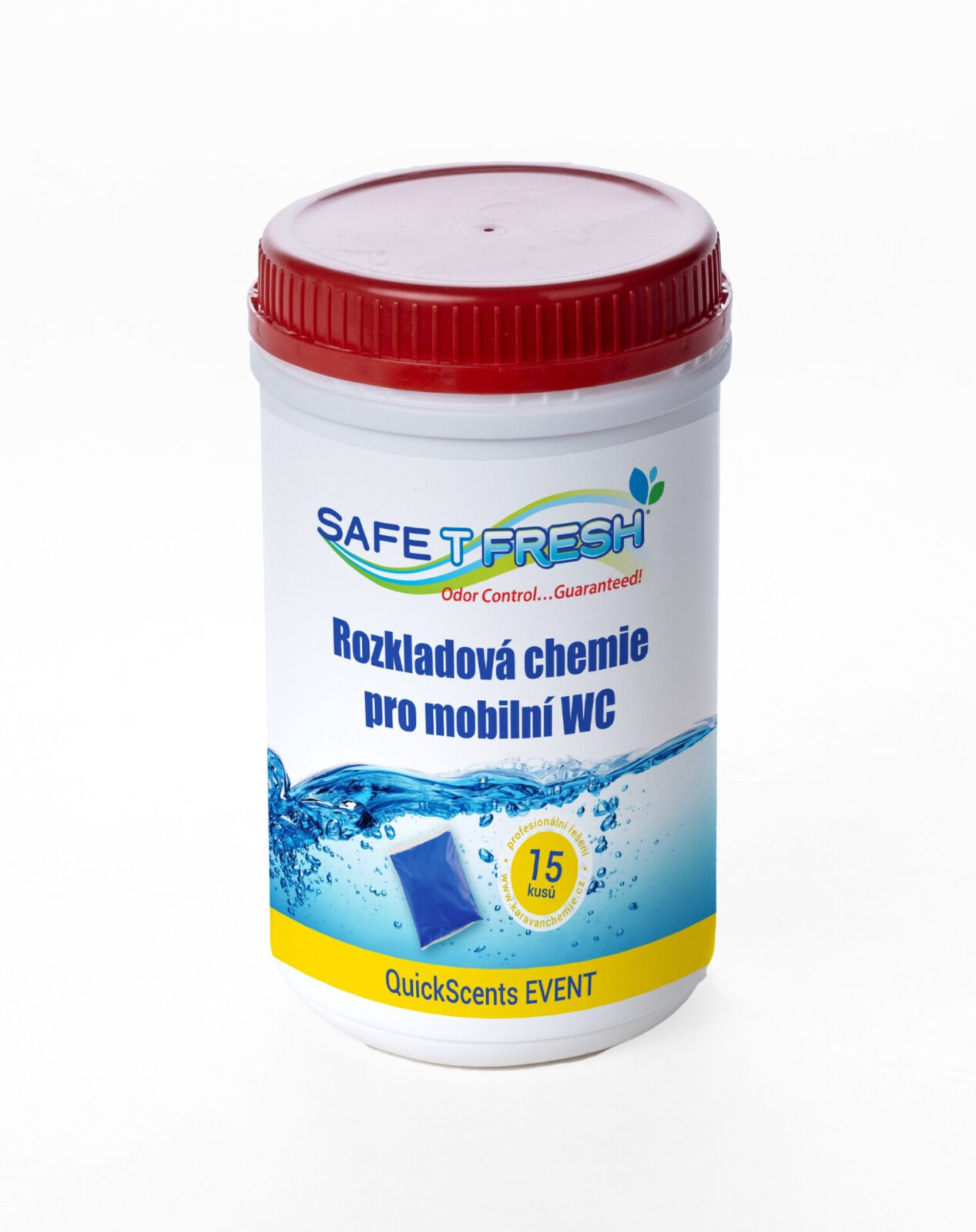 Quick Scents Event, ideální pro používání při běžné teplotě pro denní údržbu vaší toalety. Speciální patentovaná chemická formule Triple Molecular Technology pro uvolňování biocidů v odstupňovaných intervalech zajišťuje rozklad fekálií, vynikající ochranu proti zápachu toalety v uzavřených prostorech, zabraňuje usazování nečistot na stěnách nádrže, vytváří dlouhotrvající modrou barvu. Náš jedinečný vnější film se rychle rozpouští v kombinaci s měkkým, vysokým nebo nízkým pH i tvrdou vodou. Při použití slané vody budou kapsle Safe-T-Fresh fungovat na vyšší úrovni. Neobsahuje formaldehyd.